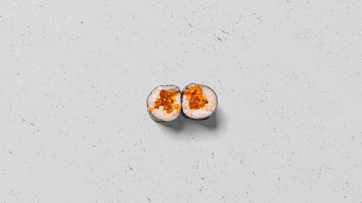 Hosomaki med ørredrogn og forårsløg.