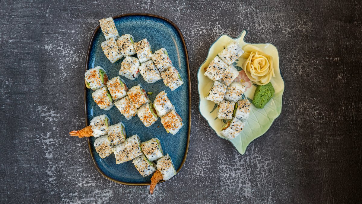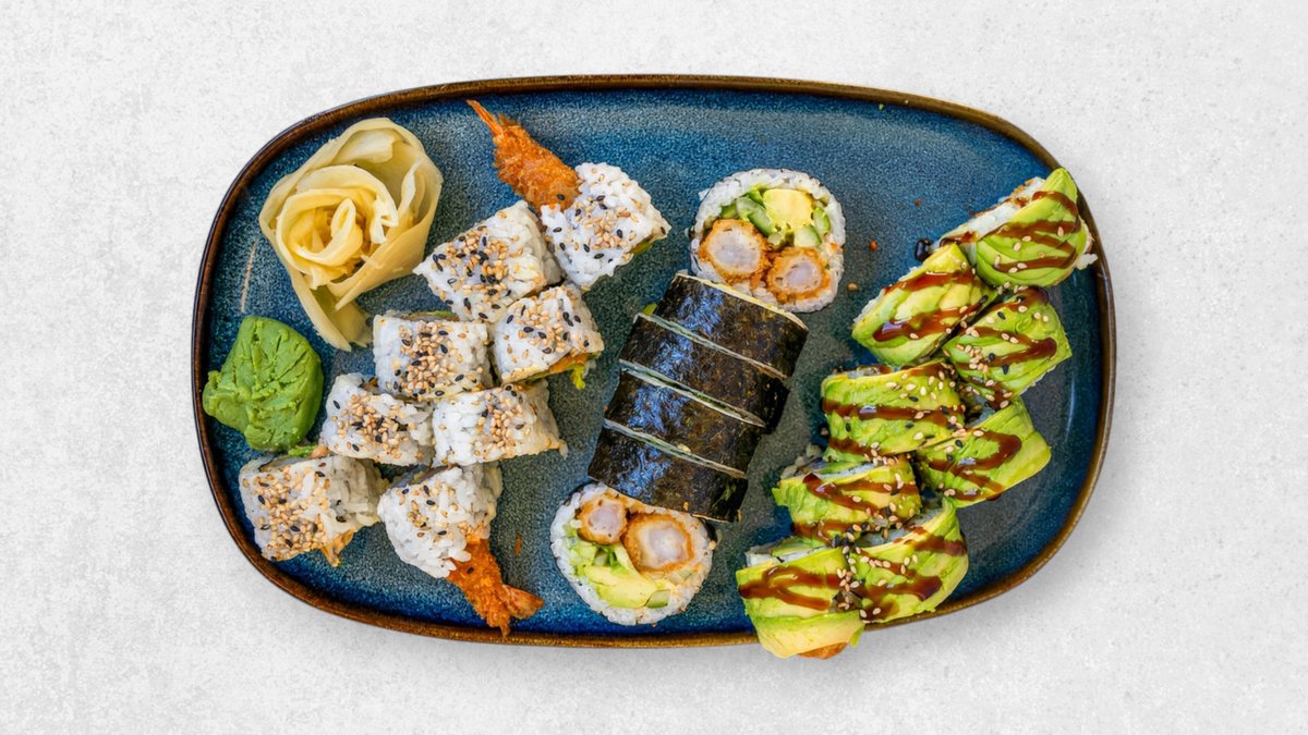 8 x Crispy Ebi Uramaki 8 x Rainbow Ebi dragon roll 8 x Valgfri uramaki