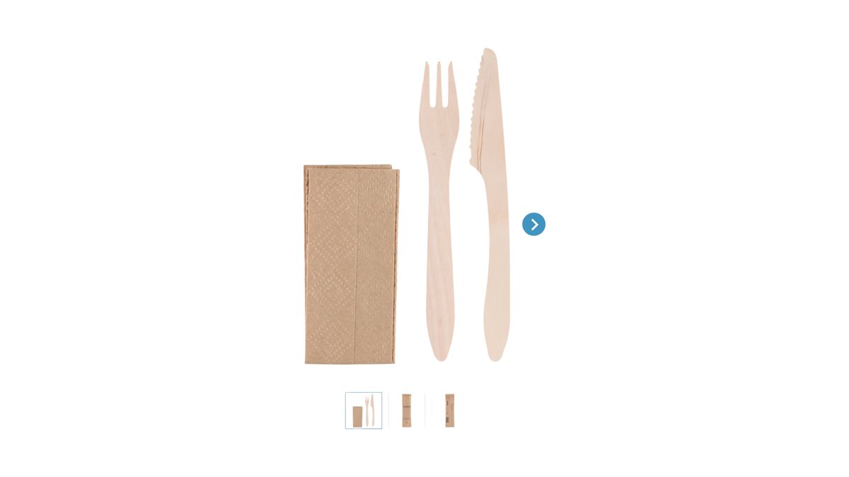 Bestiksæt Deluxe, der kommer i en stilfuld pakke lavet af ubleget kraftpapir. Sættet består af en trægaffel, en trækniv og en neutral ubleget serviet.