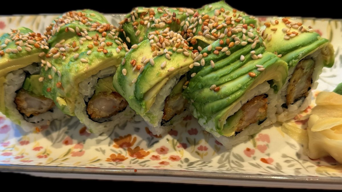 Kaburamaki: Avocado Ebi Dragon Roll 8 stk.(Valgfri) Uramaki:Crisby Ebi 8 stk Futomaki: Crisby Ebi 6 stk