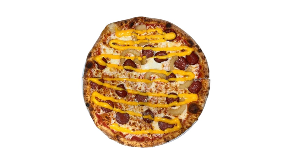 Pepperoni,onion rings , mozzarella cheese, cheddarkastike