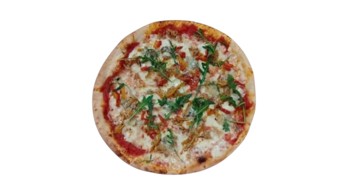 Tomato sauce, foir di mozzarella, tender chicken, grilled pepper, Gorgonzalo cheese , olive oil, Parmesan cheese, fresh rucola