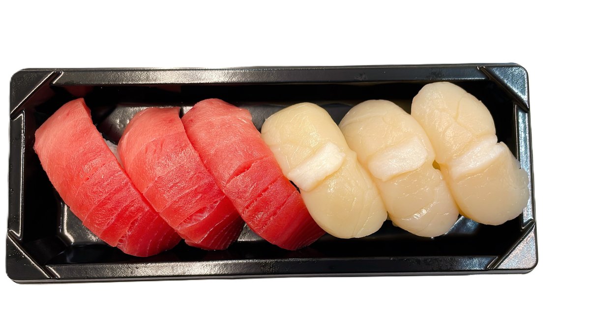 期間限定:1月19日から4月19日まで 「新しい一歩に、少し贅沢なひとときを」 中トロ3貫、ホタテ3貫