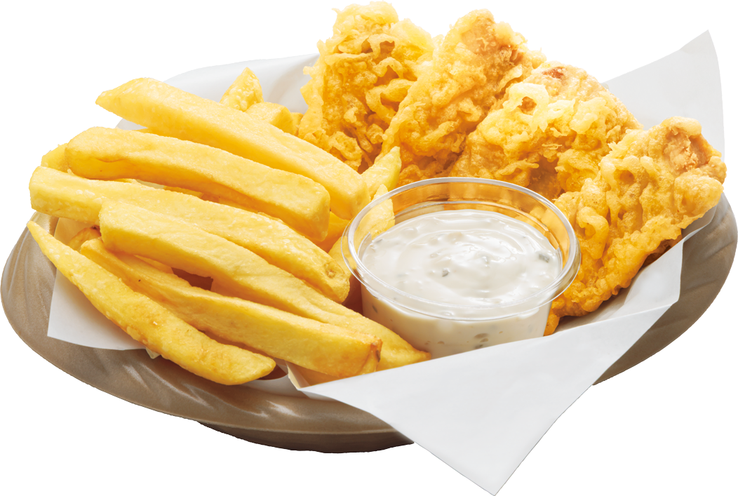 寿司屋のフィッシュ&チップス。まぐろの天ぷらとフライドポテトでご用意しました。