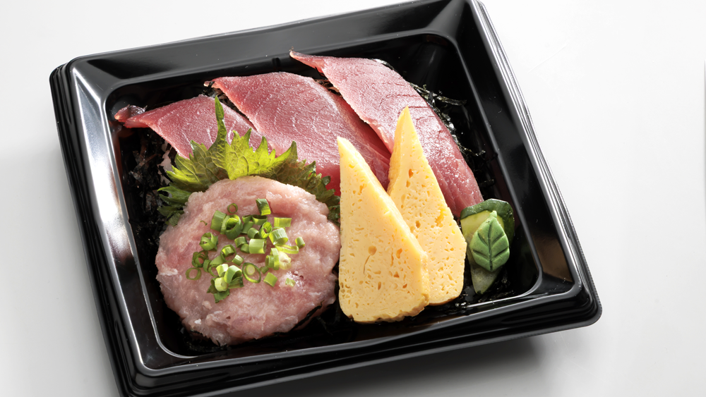 まぐろ、ねぎとろ、づけまぐろ、厚焼玉子、大葉、刻みのり ■午前11時から午後2時までの時間限定メニュー! ■セットは「そば」「うどん」「ミニシーザーサラダ」のいずれかをお選び下さい。 ※「そば」「うどん」は同じ調理器具を使用しておりますので、アレルギーをお持ちの方はご注意下さい。 ※使い捨て容器でのお届けとなります。