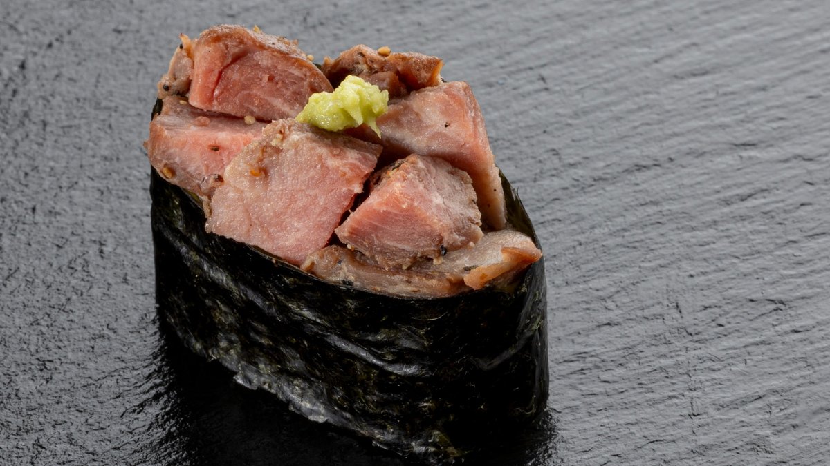数量限定:なくなり次第、売切れとなります。 刻んだローストビーフをひとくちサイズの軍艦巻きにしました。