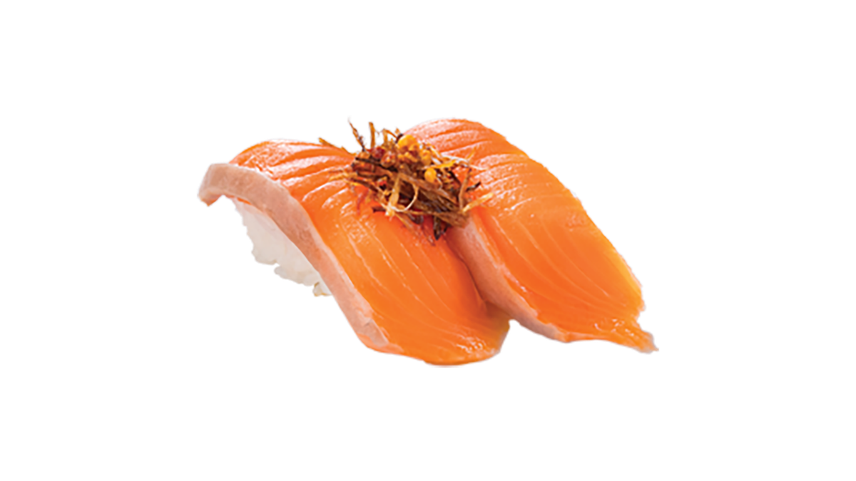 【商品説明】 【プラスもう1品】焼サーモンです。 【提供方法】 使い捨て容器に入れてご提供いたします。 【注意事項】 ※生もののため、天候等により欠品または品切れ、内容を一部変更する場合がございます。 ※アレルギー情報については魚べい・元気寿司のホームページをご覧ください。 ※全商品わさび抜きで提供しております。別添えの「小袋わさび」をつけてお召し上がりください。