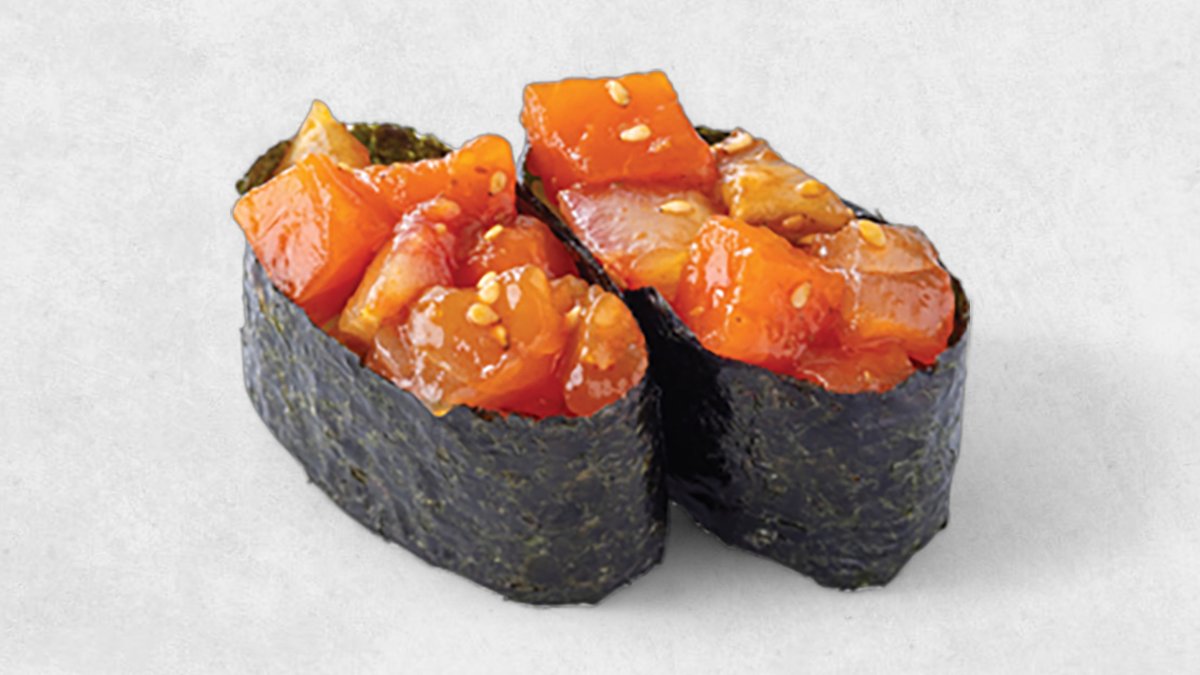 【商品説明】 【プラスもう1品】まぐろたたきぐんかんです。 【提供方法】 使い捨て容器に入れてご提供いたします。 【注意事項】 ※生もののため、天候等により欠品または品切れ、内容を一部変更する場合がございます。 ※アレルギー情報については魚べい・元気寿司のホームページをご覧ください。 ※全商品わさび抜きで提供しております。別添えの「小袋わさび」をつけてお召し上がりください。