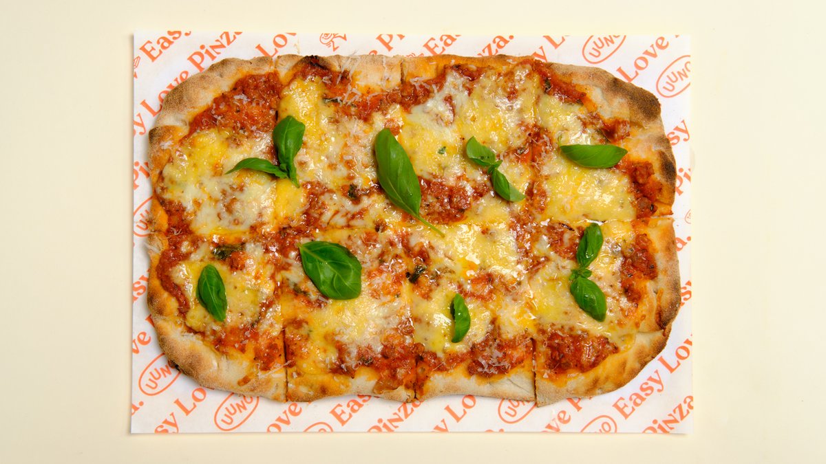 Tomaattikastike, mozzarella, parmesaani, basilika, oliiviöljy