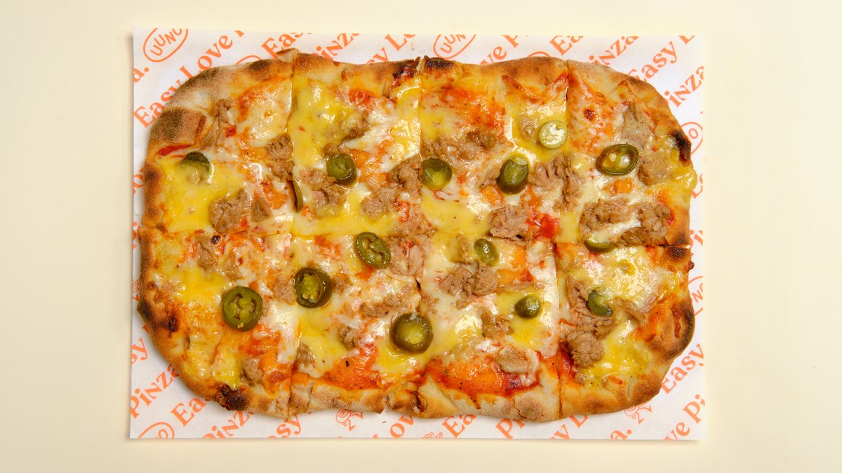 Tomaattikastike, mozzarella, tonnikala, cheddar, jalapeno