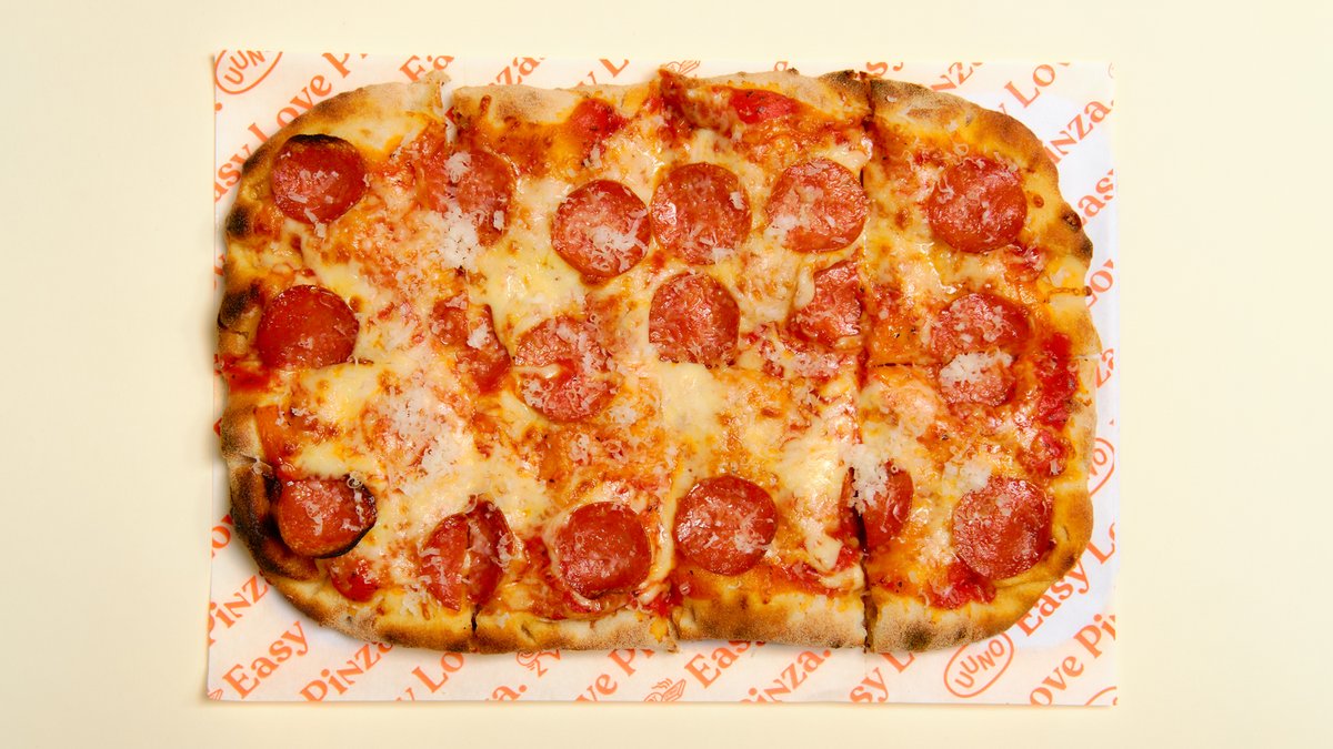 Tomaattikastike, mozzarella, kotimainen pepperoni, parmesaani
