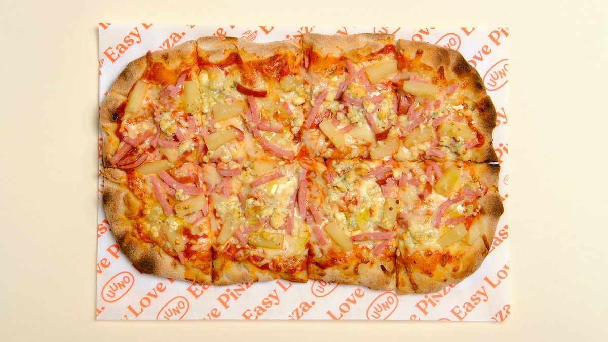 Tomaattikastike, mozzarella, kotimainen kinkku, ananas