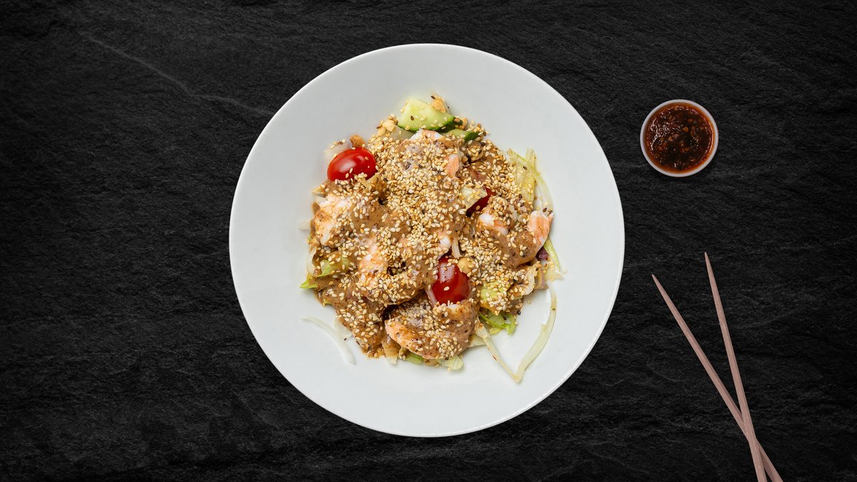 Mixed salad with Japanese-inspired toasty sesame seed dressing. Coupled with your choice of protein.