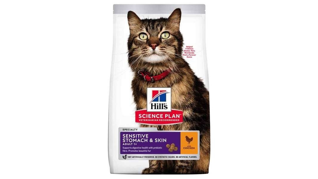 Hills Sensitive Stomach&Skin sausā barība kaķiem ar vistu, 300g